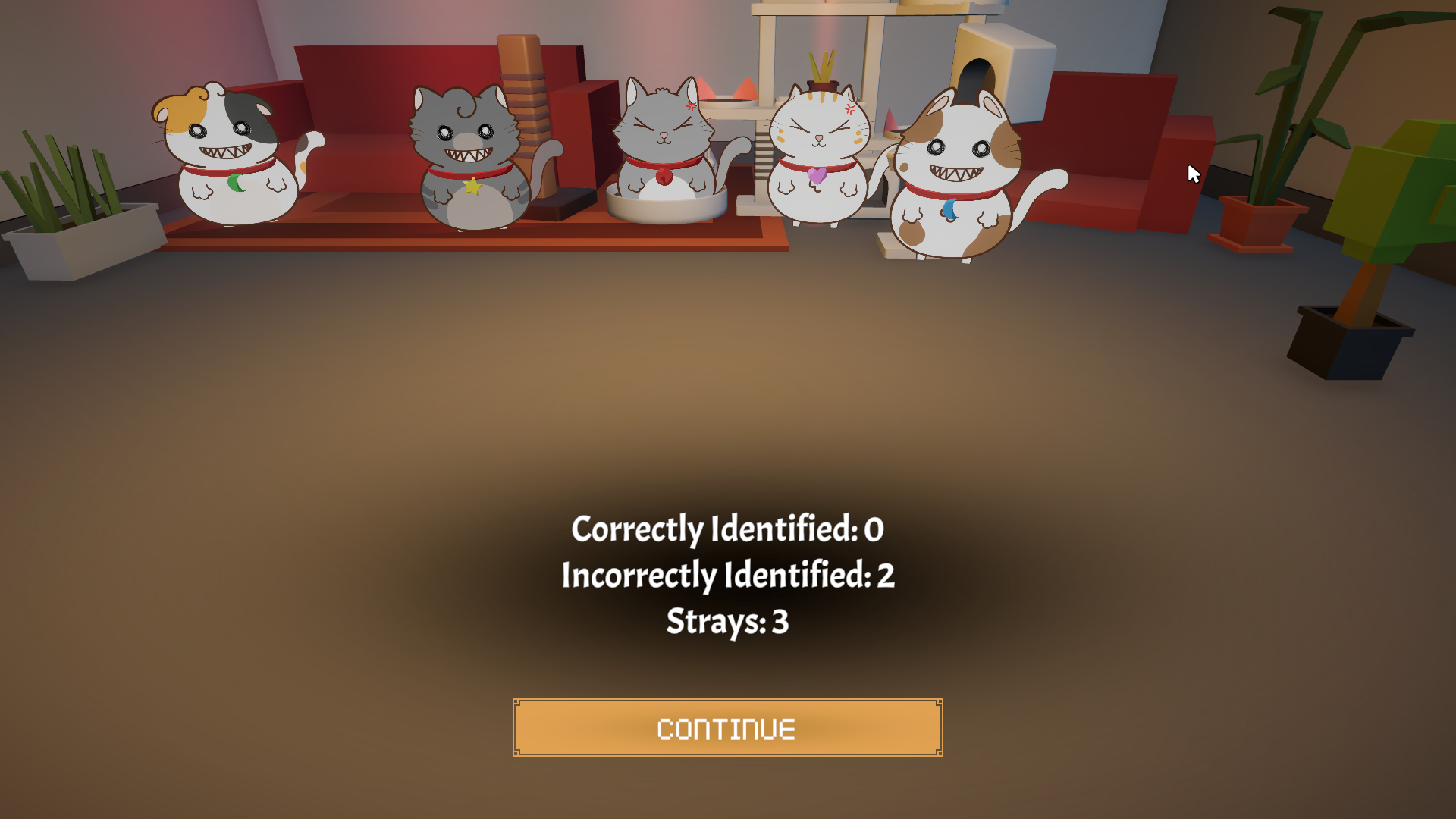 You agreed to look after granny's cats, but there's something suspicious going on. It seems that some of these cats do not belong here. Do you have the attention to detail to identify the correct cats and their collars? Don't let the strays inside granny's house!
